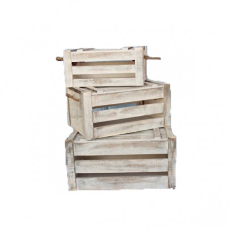 Cassetta in legno naturale non verniciato con maniglie laterali in corda.